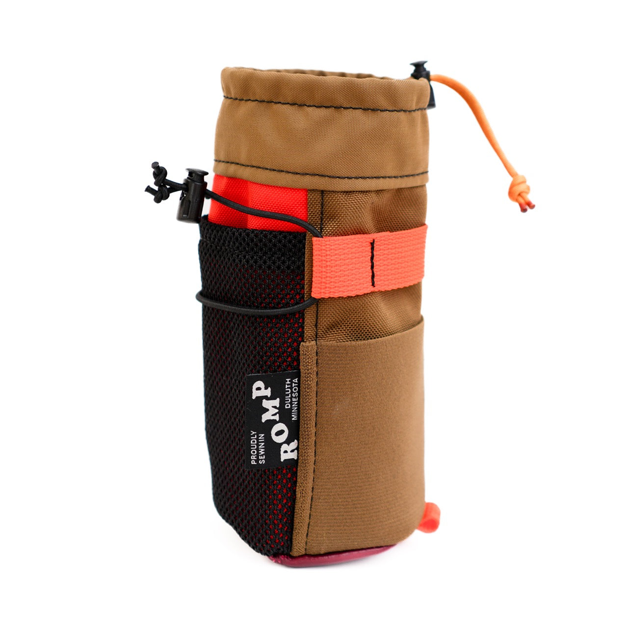 Treat Yo Self! On any good ride, quick access to treats and a beverage is a must. Why not put them right at your fingertips? Our feedbag attaches to your handlebar, stem, or bicycle fork, providing a stable way to carry large bottles, speakers, or a crowler of your favorite brew! The elastic and mesh pockets on the side add space for your phone, snacks, and a bike tool.